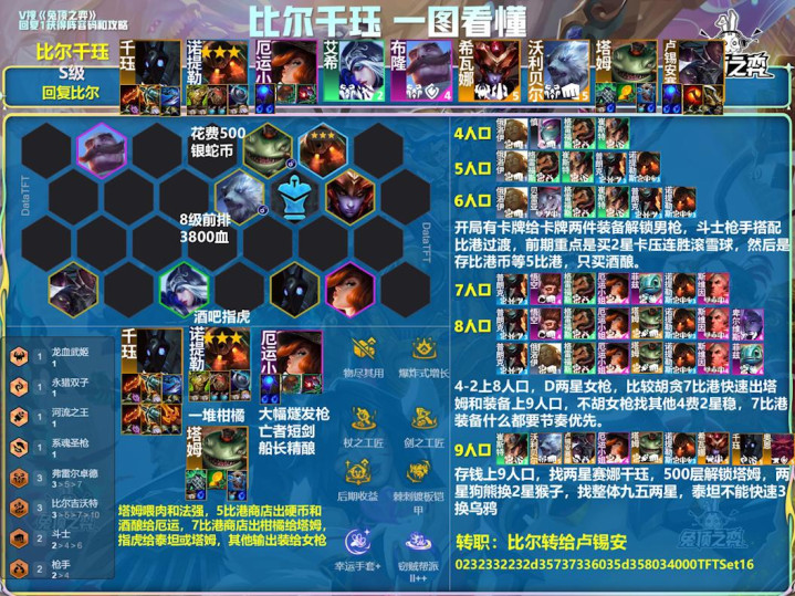 版块第二威望比尔95,兔子最绝活的威望,你能给兔子比尔的坑位王者局我也能游龙,比尔的焚诀即是前期拿强战力强化,尽快的把5比开出来打压制,体系能合手两星获胜合手,最佳是那种或者不计利息获胜跳6东谈主口7东谈主口的强化,应用自如的工夫获胜贪7比,8东谈主口也得D4费两星女枪小鱼皆是不错生动用的,质料高你就贪的多或者更好的拿比港的装备,然后上9转95威望大成,兔子惟一好犯的错即是我9东谈主口有工夫上9上的比拟贪,这个版块如故要多D一下提前抢一下5费卡的,有工夫会贪的抢不到5费卡这局鸡可就真没了