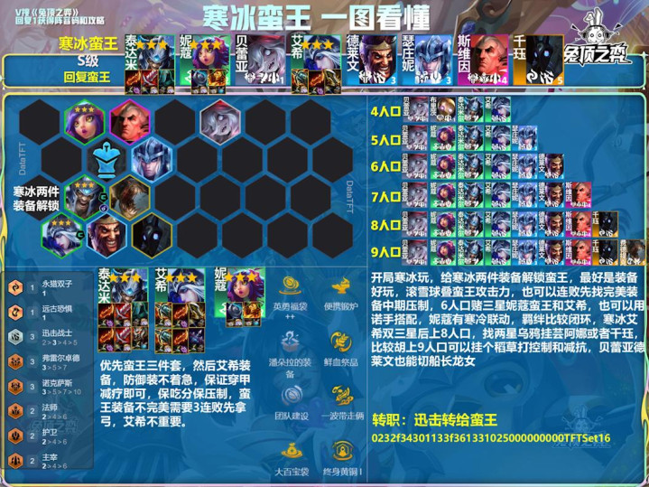 版块第八威望寒冰蛮王,东北夫人不错击杀无穷叠报复力,前期有寒冰装备对会终点强势,3星的快蛮王能当3.9费卡,属于快节拍天胡送分威望