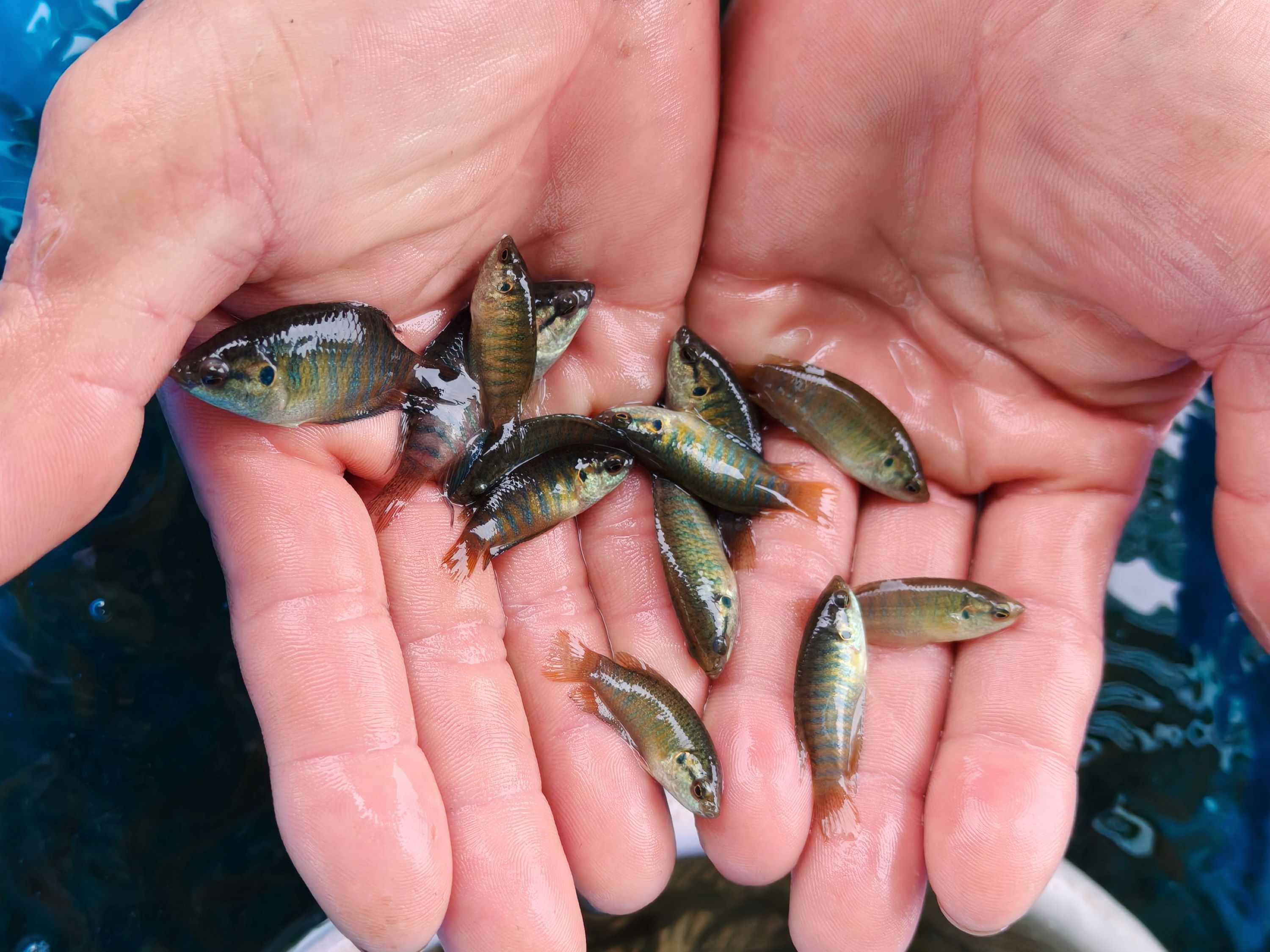 村民繁衍的宏构不雅赏鱼。(曾灿奎 摄)