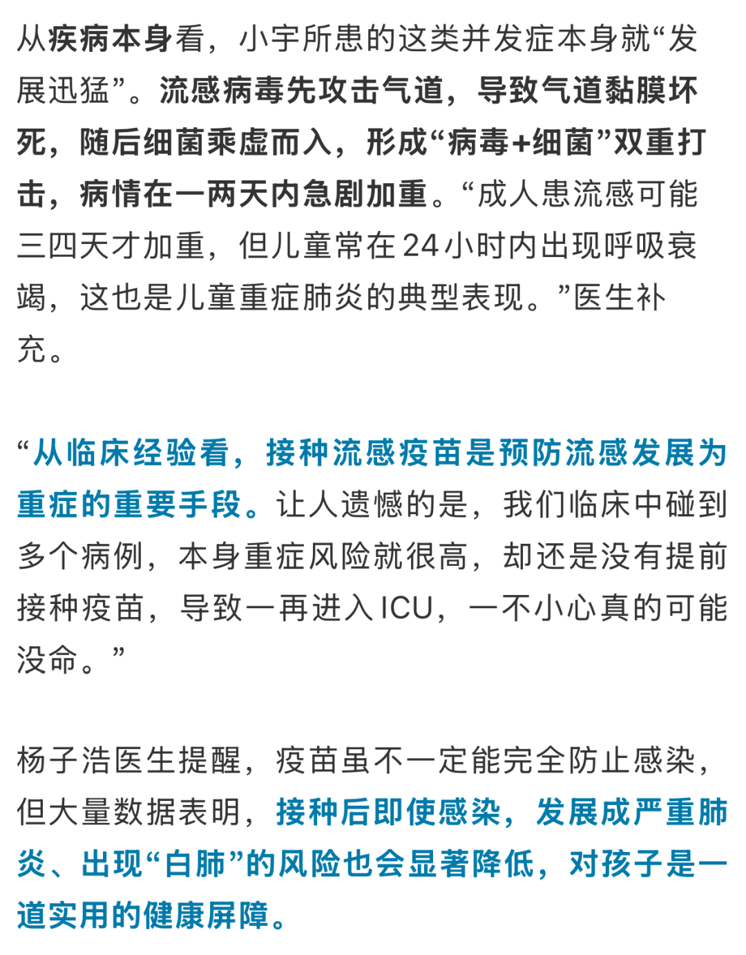 好多家长不明,为什么等闲流感在孩子身上进展这样快?杨大夫评释,这与儿童的生理特质和疾病自己的严重性关联,两者肖似显赫增多了重症风险。
