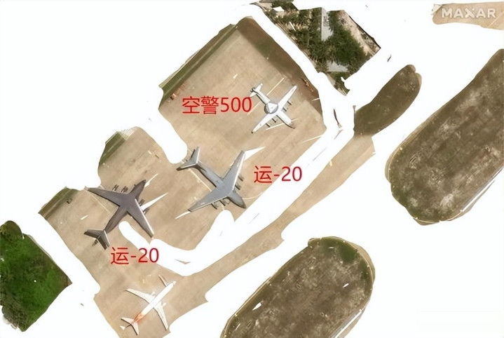 一张夸耀两架轰-6轰炸机停在跑说念旁,这种飞机升级后能远距离打击,航程长,挂载反舰导弹;另一张拍到不辽远的两架运-20输送机和一架空警-500预警机,它们不是孤单出现,而是造成一个小团队。